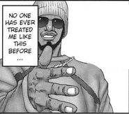 Bob and his friends were later seen seeking cover when Yoshikazu Suzuki and Kei Kurono fought off the T-rex Aliens on the Gantz Bike. When the Kappe Alien made its second appearance, Bob and his friends jumped in hoping to defeat it, but they were all easily defeated, leaving Kaze to finish the fight.