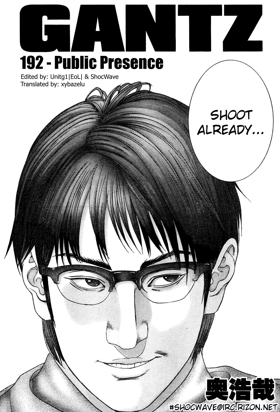 Public Presence (公衆の面前, Kōshū no Menzen) is the 192nd chapter of the Gantz manga, written and illustrated by Hiroya Oku.