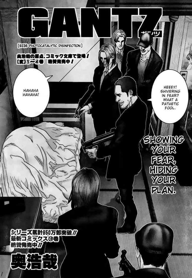 Photocatalytic Disinfection (光殺菌, Hikari Sakkin) is the 236th chapter of the Gantz manga, written and illustrated by Hiroya Oku.
