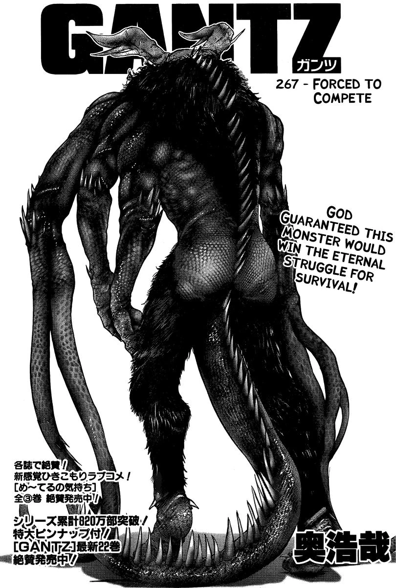 Forced to Compete (進退の窮み, Shintai no Kiwami) is the 267th chapter of the Gantz manga, written and illustrated by Hiroya Oku.