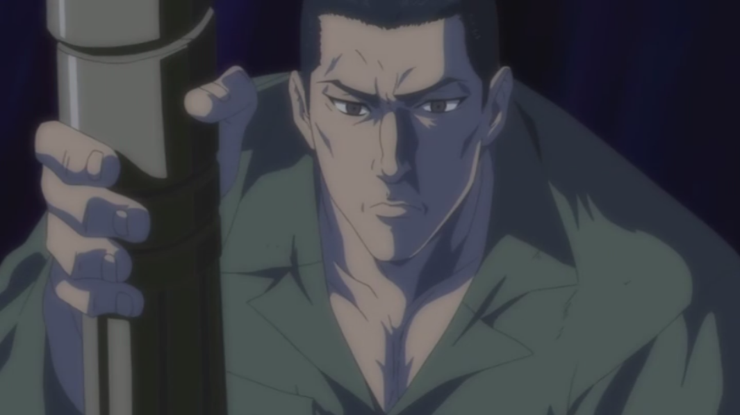Juzo is a good looking well trained 38-year-old male, who was a member of the JSDF as a sniper. He is taller than average and has no fat on his body. He has short black hair which he keeps in a crew cut and he weighs more than his looks would suggest due to the muscle mass he has. He wears plain green clothes in the anime and plain military style clothes and boots in the manga. He doesn't wear the suit and appears on the cover of Chapter 084.