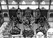 After defeating the Daibutsu Alien. The Gantz Team splits up to deal with the two remaining aliens, however when Hojo's team heads to the location to the supposed second alien they find Kannon and these 4 Guards instead. JJ despite Masanobu Hojo warning him not to approaches one of the 4 and fights it. Though Tomashiro Jiro and Yuta Kondo are confident in JJ's skill the statue breaks his arm. JJ tackles the statue to the ground only to have his head kicked off by another of the 4 statues